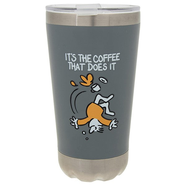 This Chaps Stuff novelty travel mug is the perfect gift for any comedy lover. With a round shape and made from durable stoneware material, it's suitable for all occasions. The grey colour and contemporary style make it a great addition to any home. With a comic pattern that's sure to make you smile every time you use it.